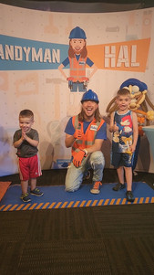 Day 3- We quickly packed up and headed to Broadway at the Beach to attend "Awesome-con" hosted by Handyman Hal, Daniel's favorite character from a TV show. We thought this would be a quick meet and greet, but to our surprise we waited in a long line for 3 hours in 98° weather. One nice thing about this event is that they had a small concern inside that allowed those who wanted to take a break to go inside, with the nice cool air conditioning. David and I took turns holding our place in the line while the other parent went inside- this was really effective in keeping the kids engaged and cool, especially because they had indoor activities too such as small contests. Luckily they had outdoor activities too, meet and greets with additional people from the show, a balloon artist, a police officer with his Jeep police truck and photo opportunities with Handymans ATV. As we were getting closer to meeting handman, their was a window open selling ice cream to help us cool off! What happened next was equally as "sweet", as Daniel and DC finally got to meet Handyman, they were both very excited!!!! Handyman Hal was incredibly nice and even autographed hammers for the boys! After, this event we checked into our Beach house on Pawleys Island, where we would be staying for the next week!