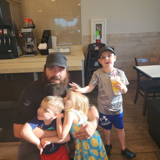 On day 2 we woke up and headed over to Waffle House to give our boys their first waffle house experience. The waitress was very nice and gave the boys paper waffle house hats to wear! As we were on the way to Wilmington, one of our stops for diesel lead us to a fun gas station that had a variety of animals and different themes. It was a great opportunity for all of us to get out and stretch our legs! The boys were happy when we also surprised them that we would be staying at a KOA in Wilmington, NC for the night! Upon arrival to the KOA, we quickly grabbed our swim suits and headed to the pool to cool off. The KOA in Wilmington offers a lot of activities for the whole family. A few of our favorite were The swimming pool, the Gnome/Fairy Garden, Movie night at the Pavillion, a wooden playground pirate ship, a giant chess board, and a swing set. What's nice about Wilmington's KOA is that it's close enough to everything that we could Uber some Chipotle for dinner while still feeling secluded. Saturday morning, we tried their on-site cafe, it was nice and convenient!